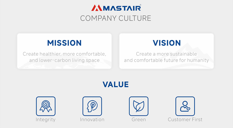 Mastair Environmental Technology (Guangdong) Co., Ltd. is a high-tech enterprise specializingin R&D, manufacturing, and global supply of air source heat pump systems. Leveraging robust R&D capabilities, cutting-edge manufacturing processes, and comprehensive service networks, we deliver high-efficiency, environmentally sustainable HVAC solutions to global clients.
